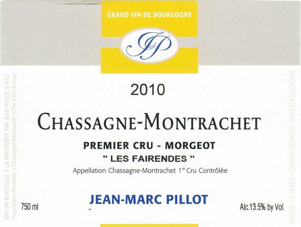 The domaine is dominated by its production of white wines but there are important cuvees of red wine produced here as well. Vineyard holdings are spread throughout the village of Chassagne with subsidiary parcels in Puligny, Santenay, Meursault and Remigny (to the south). This breadth of real estate enables the Pillot family to produce a stunning range of wines that put on brilliant display the intricacies of terroir in this southern tier of the Cote de Beaune. The estate's jewels are its premier crus blancs (Baudines, Chenevottes, Macherelles, Vergers, Morgeot, Caillerets, La Maltroie and Champs Gain) and premier cru rouges (Macherelles, Morgeot, Clos St.Jean), all within the boundaries of Chassagne Montrachet. However, one should not overlook several gems that come from less exalted appellations, such as the Bourgogne Blanc "Grands Champs", the Bourgogne Rouge "Grandes Terres", and the expressive Santenay Rouge "Champs Claude"; and, of course, there are the fine village wines in both white and red from Chassagne. Jean-Marc also accesses grapes in very limited quantities from interesting appellations like his Montagny 1er Cru "Les Gouresses" and Saint Romain Blanc "La Perriere".