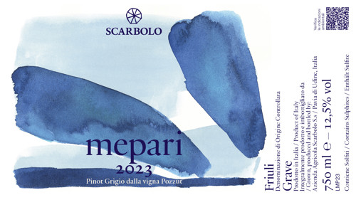 Meaning “my father” in Friulian dialect, “Mepari” is sourced from Scarbolo’s oldest Pinot Grigio—a low-yielding 1.4-hectare parcel in the easternmost section of the limestone-heavy Pozzut vineyard in Lauzacco with vines a minimum of 27 years old. Fermentation of the 2023 “Mepari” began in stainless steel via pied de cuve and finished in 20-hectoliter Slavonian oak cask with spillover into three smaller barrels. In contrast to the subtle skin-maceration influence of the flagship “Pipinot,” “Mepari” (vinified as a white wine) presents a cleanly articulated array of verbena, acacia flowers, and laurel on a palate of tangy but rounded acidity, with a trace of appetizing bitterness that tightens up the lengthy finish. The 2023 underwent full malolactic fermentation and finished with a modest 12.37% natural alcohol.