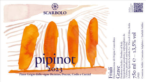 “Pipinot” is Lara and Mattia’s flagship wine, produced from four vineyards around Lauzacco of dolomitic limestone origin with soils varying in proportions of loamy clay, gravel, and sand. In homage to the traditional ramato style of vinification wherein Pinot Grigio’s notable pink skins contribute color and texture, the 2023 “Pipinot” macerated for 30 hours before fermenting via indigenous yeasts in the pied de cuve method, aging for eight months in a combination of equal parts stainless-steel tank and 20-hectoliter Slavonian oak botti before being bottled without filtration. Pouring a lovely light gold with glimmers of pink, this texturally layered wine offers notes of melon rind, white cherries, and licorice on a generous but focused frame, with notable but non-intrusive grip and persistence. Aside from the obvious linguistic connection to its constituent grape variety, “Pipinot” in Friulian dialect refers to a rambunctious child—perhaps one who has ambitious ideas about making big changes at the family winery (!)… The 2023 underwent partial malolactic fermentation and contains 13.68% natural alcohol.